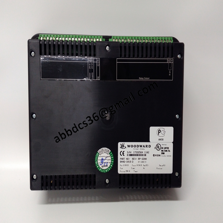 WOODWARD 8446-1019 is commonly used as a system extension or control panel unit to increase the input and output capabilities of control systems and provide on-site operation and status indication functions. It is widely used in power plants and industrial power control systems.