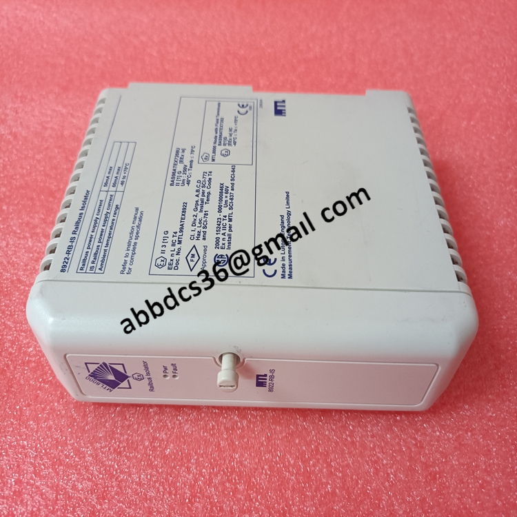8922-RB-IS bus isolator is a fieldbus isolation and signal protection module used in industrial automation systems. Its main function is to electrically isolate the fieldbus of the control system, protect the controller and communication equipment from electrical problems such as interference, voltage spikes, and ground loops, thereby improving the overall stability and safety of the system.