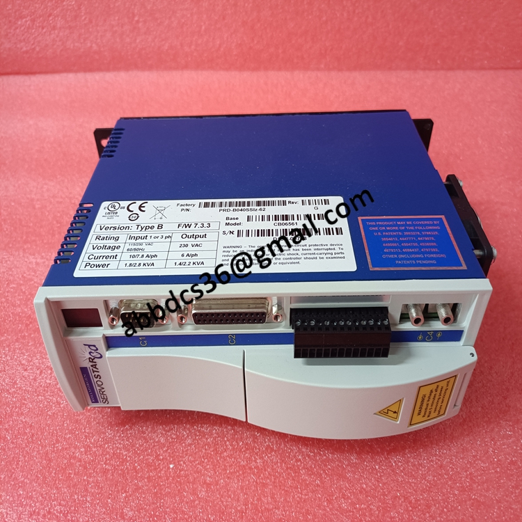 The PRD B040SSlz-62 servo drive corresponding to the CB06561 model is a servo drive unit used in industrial automation motion control systems. This device is responsible for receiving instructions from the controller and outputting accurate current/voltage waveforms to drive servo motors, achieving high-precision and high response motion control.
