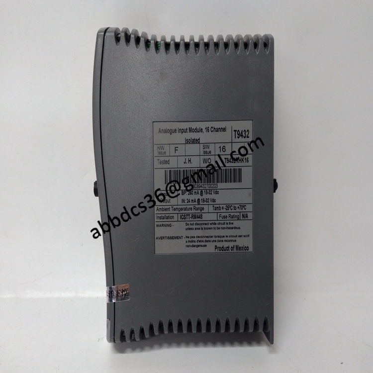 ICS TRIPLEX T9432 is an analog input module in ICS Triplex AADvance/safety control systems, mainly used for the acquisition and processing of analog signals in industrial fields. This module can convert current or voltage signals from on-site sensors into data that can be recognized by the control system, and is widely used in Safety Instrumented Systems (SIS) and critical process control systems.
